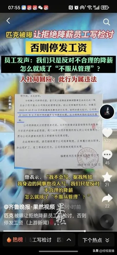 近日杠杆配资公司,多位网友反映福建泉州匹克体育用品有限公司要求拒绝降薪的员工提交检讨书,否则将自2025年9月起停发工资,引发舆论关注。经视直播记者联系泉州市人力资源和社会保障局,工作人员指出此举不合理且涉嫌违法,律师也强调企业单方面降薪及停发工资均无法律依据。
