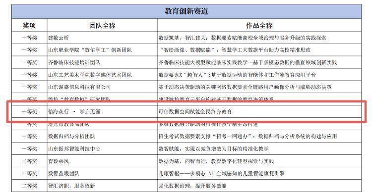 大众网记者 王玮玮 青岛报道近日,2025年“数据要素X”大赛山东分赛组委会公布了决赛获奖名单,青岛开放大学参赛作品《可信数据空间赋能全民终身教育》荣获教育创新赛道一等奖,实现教育大数据领域省级权威赛事中的首次突破。